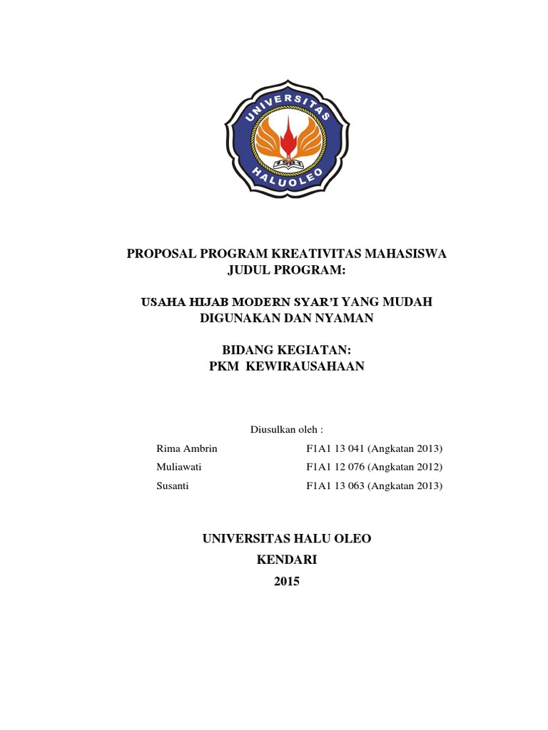 PROPOSAL PROGRAM KREATIVITAS MAHASISWA PENJUALAN JILBAB BERBAHAN SATIN VELVET DAN KATUN BERKUALITAS NAMUN HARGA MURAH - PDF Free Download