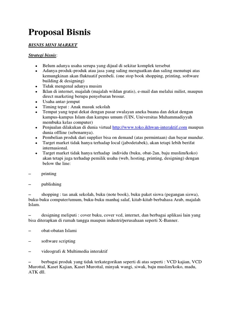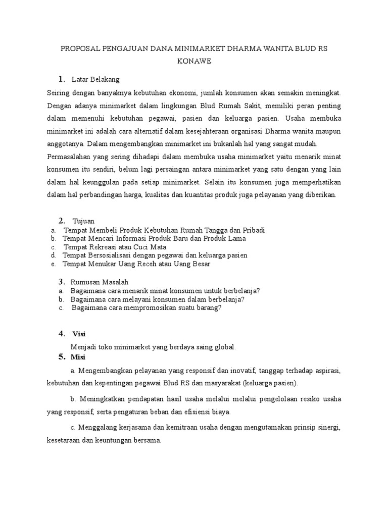 Proposal Pendirian Minimarket | Berbagi Informasi, Membangun Negeri
