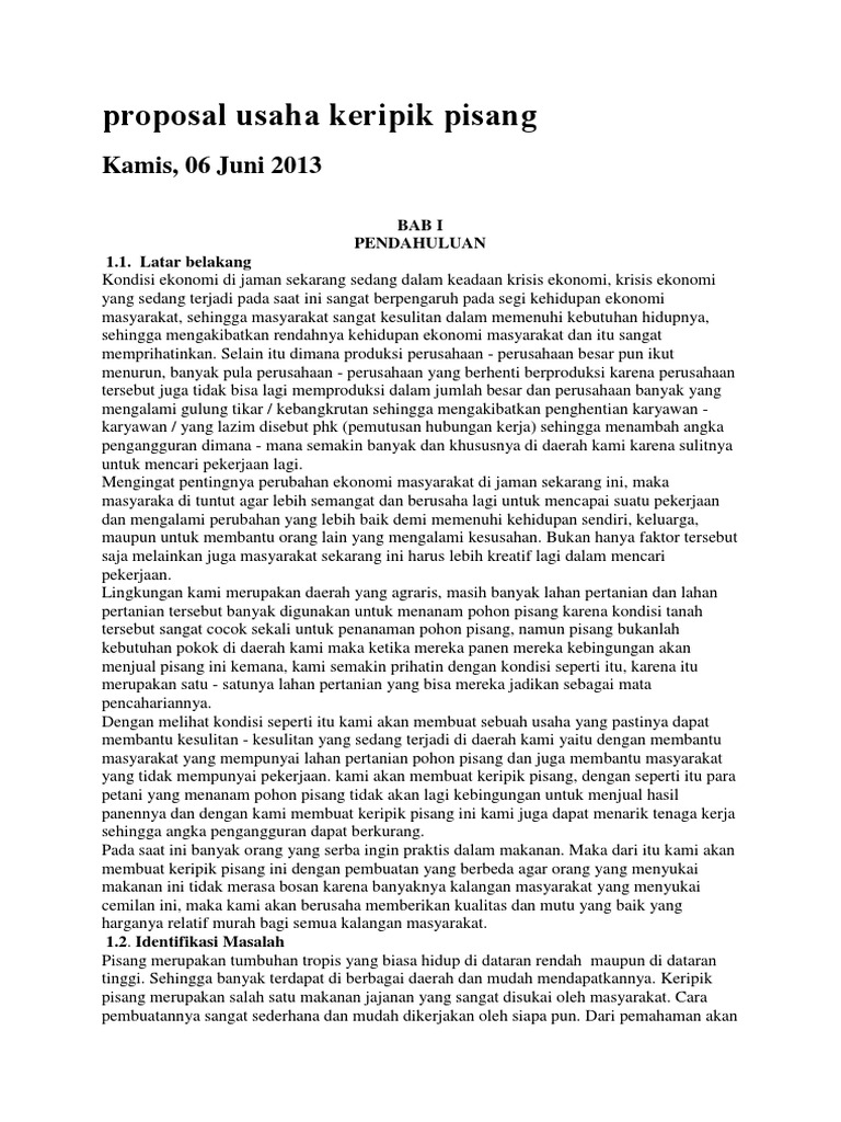 DOC) Contoh Proposal Usaha Kripik Pisang | dian pujiantara - Academia.edu