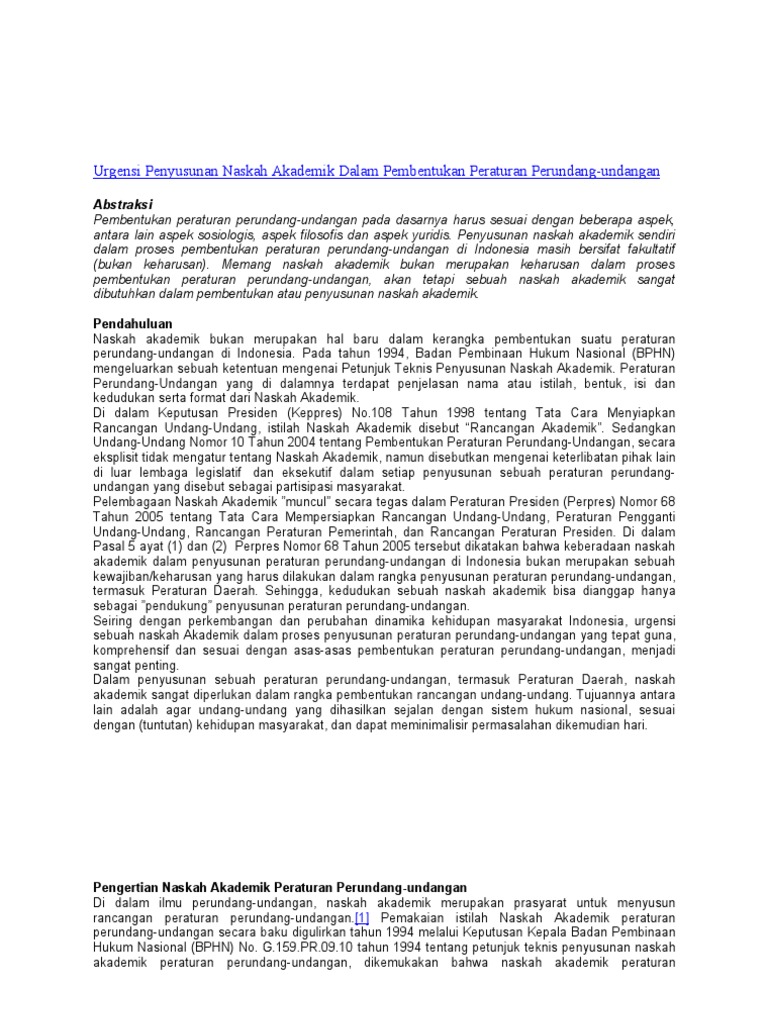 Urgensi Penyusunan Naskah Akademik Dalam Pembentukan Peraturan Perundang