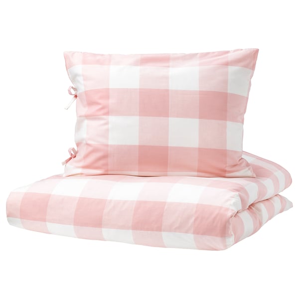 EMMIE RUTA Quilt cover and 2 pillowcases - light pink/white - IKEA