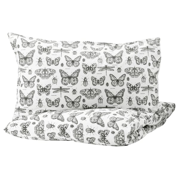SÅNGLÄRKA Quilt cover and pillowcase - butterfly/white blue - IKEA