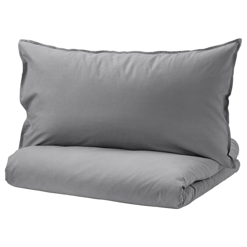 BLÅVINDA Quilt cover and pillowcase - grey - IKEA