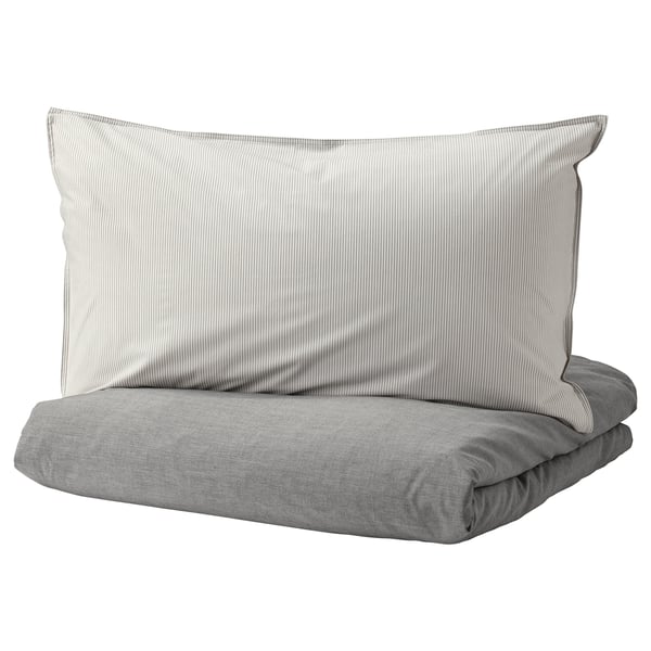 BERGPALM Quilt cover and 2 pillowcases - grey/stripe - IKEA