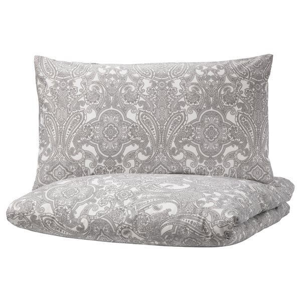 ALVINE KVIST Quilt cover and pillowcase - white/grey - IKEA