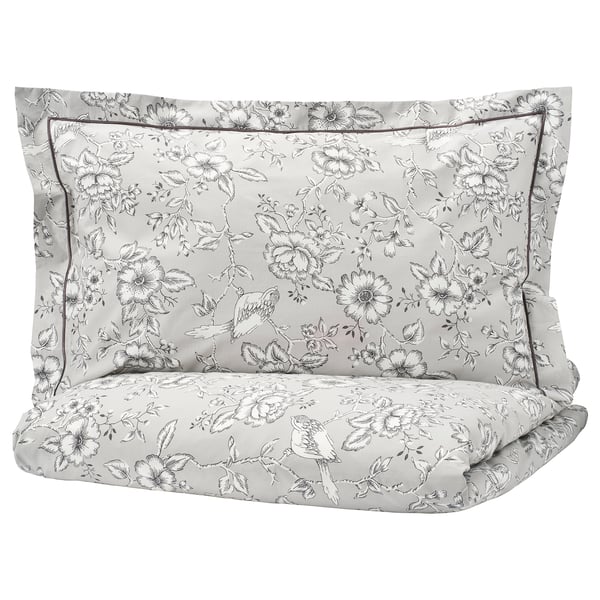 KUNGSBLOMMA Quilt cover and pillowcase - white/grey - IKEA