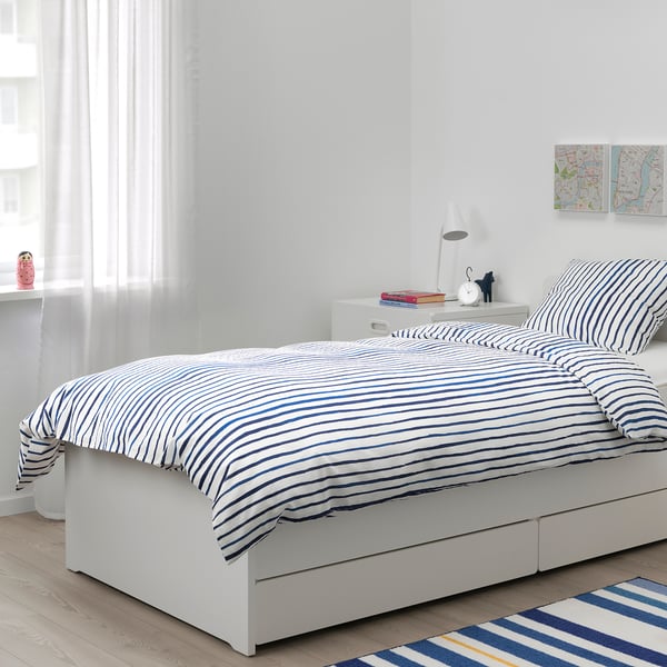SÅNGLÄRKA Quilt cover and pillowcase - striped/blue white - IKEA
