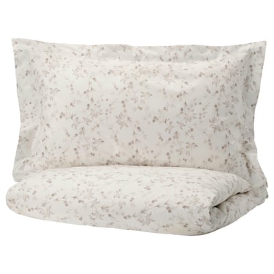 JÄTTELILJA Quilt cover and 2 pillowcases - white/floral patterned …
