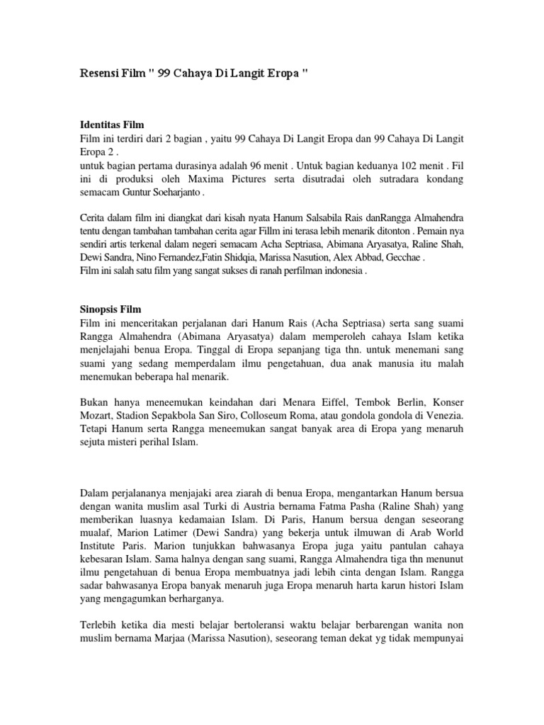 Unduh Film 99 Cahaya Dilangit Eropa Dari Contoh Resensi - trueofiles