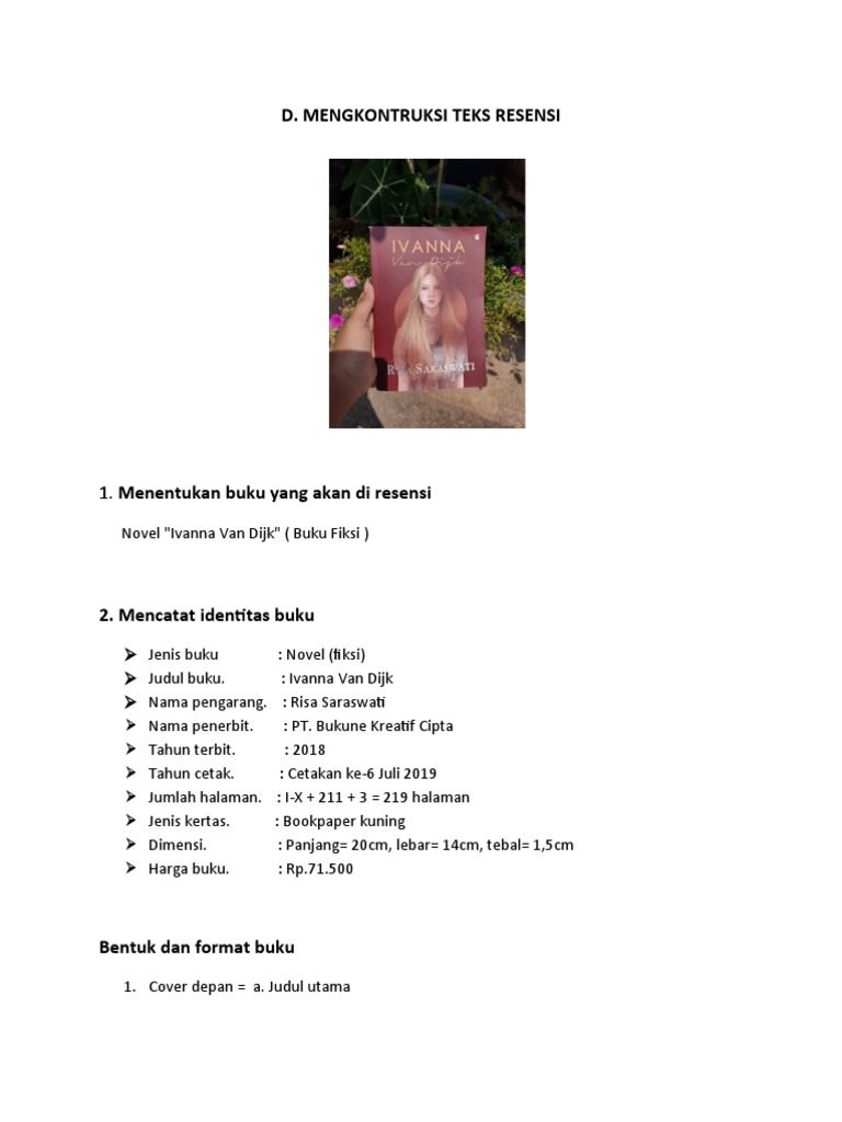 D. Mengkontruksi Teks Resensi: 1. Menentukan buku yang akan di resensi