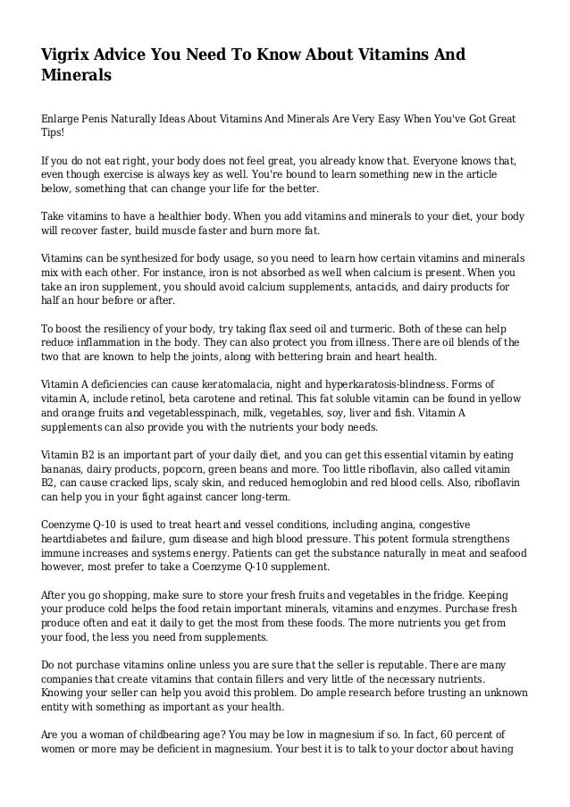 Vigrix Advice You Need To Know About Vitamins And Minerals
