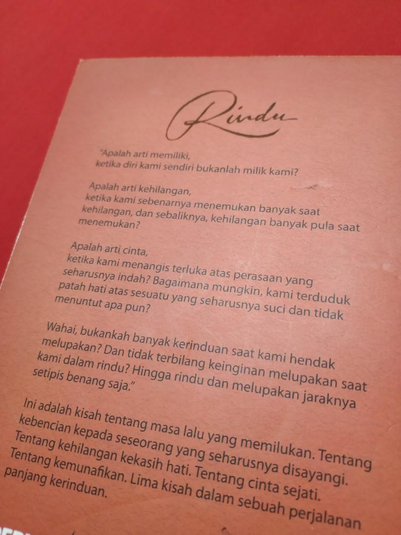 RESENSI NOVEL RINDU : Lima pertanyaan, lima jawaban, lima keunggulan, lima refleksi kehidupan - Riawani Elyta