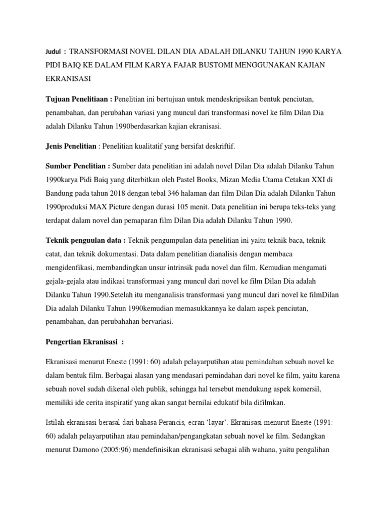 DOC) RESENSI NOVEL DILAN 1990.docx | zihad islami - Academia.edu