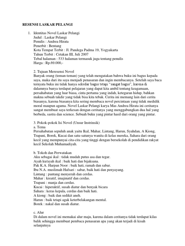 LENGKAP] Contoh Resensi Novel Laskar Pelangi dan Sang Pemimpi
