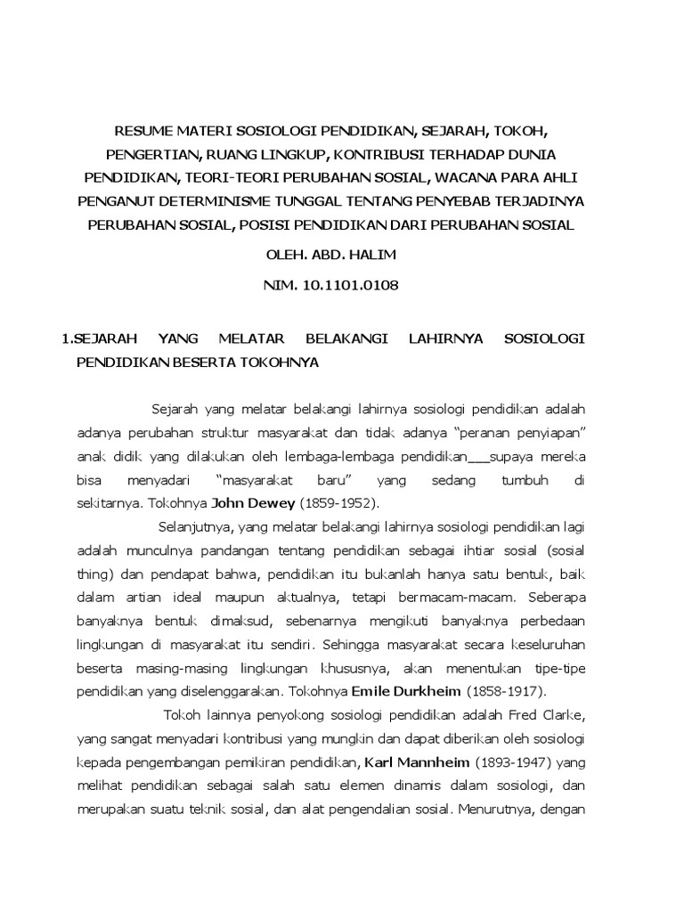 DOC) RESUME MATERI SOSIOLOGI PENDIDIKAN | aby kembar - Academia.edu