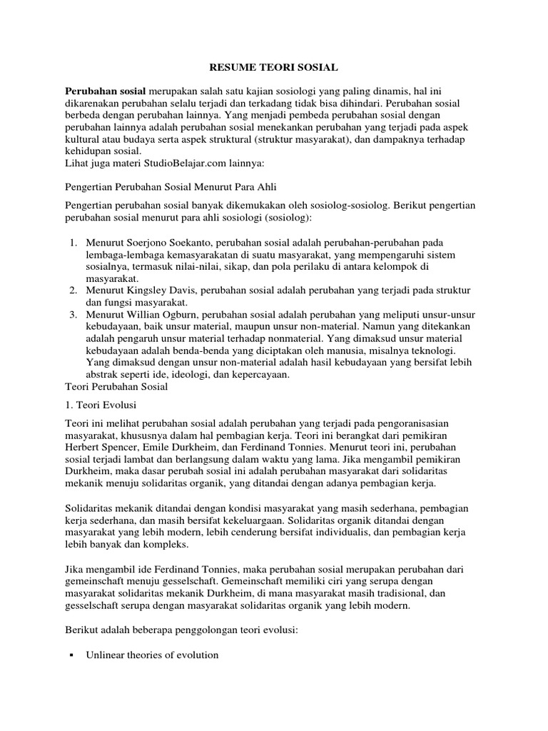 Resume perubahan sosial