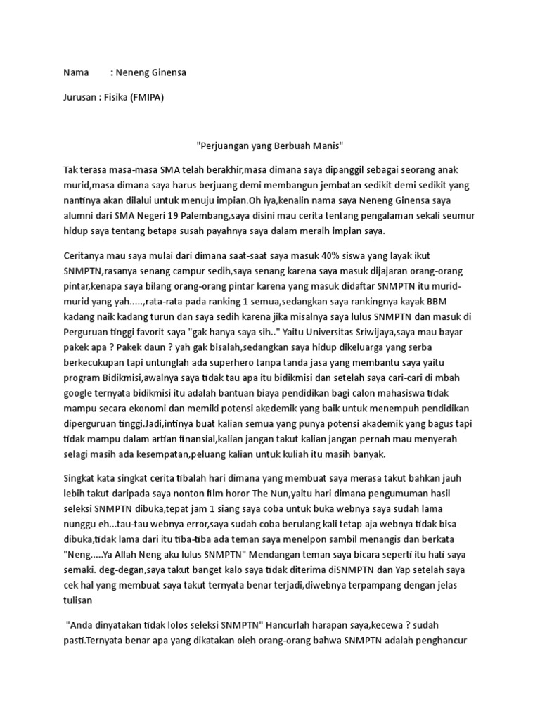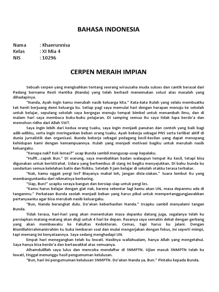 Mengabstraksi dan Mengonversi Tek CERPEN " MERAIH IMPIAN" - Tugas …
