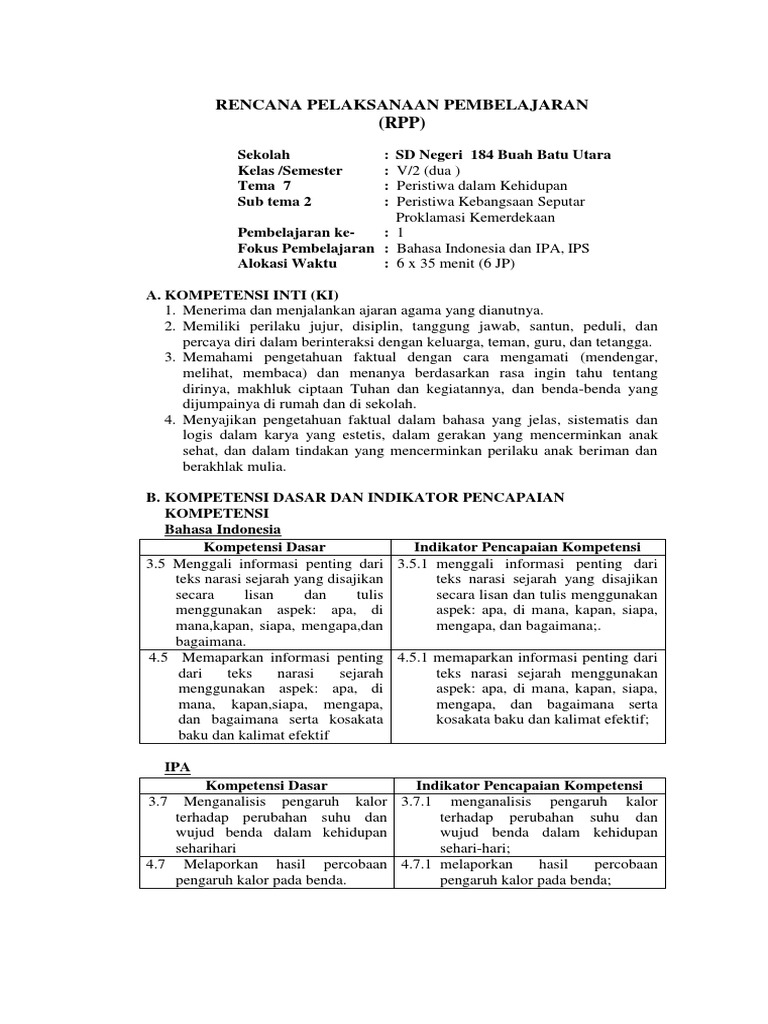 DOC) RPP TEMATIK KELAS 5 | reny oktonia - Academia.edu