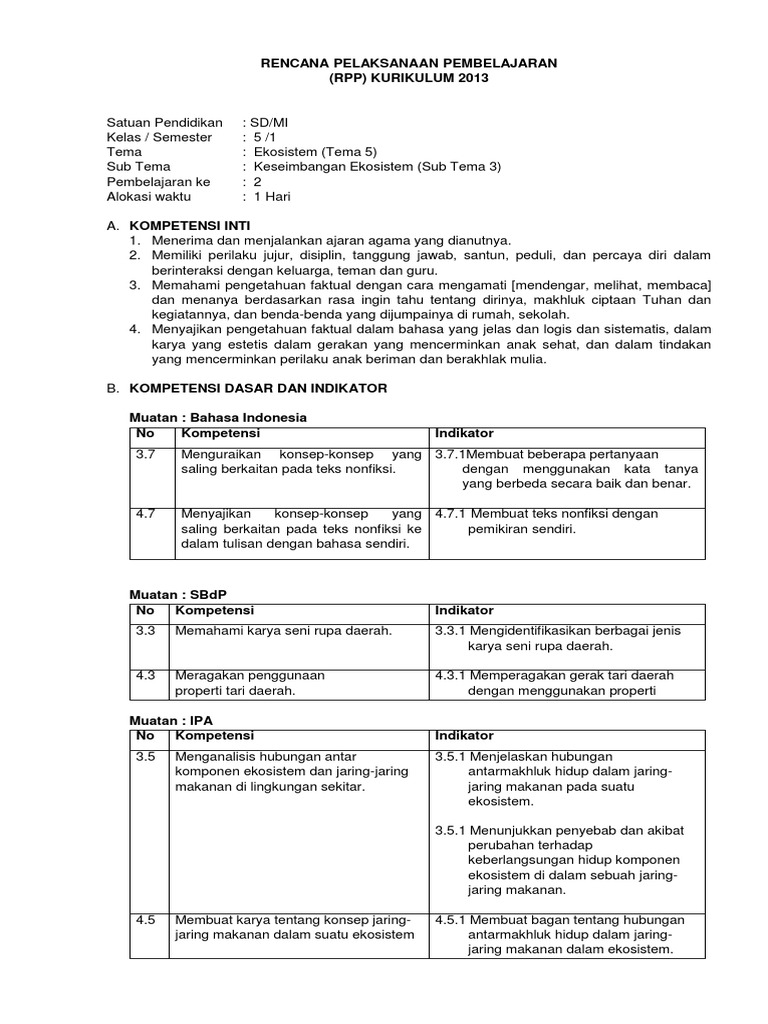 DOC) RPP SD KELAS 5 TEMA 5 - Ekosistem.doc | Roni Anasoka …
