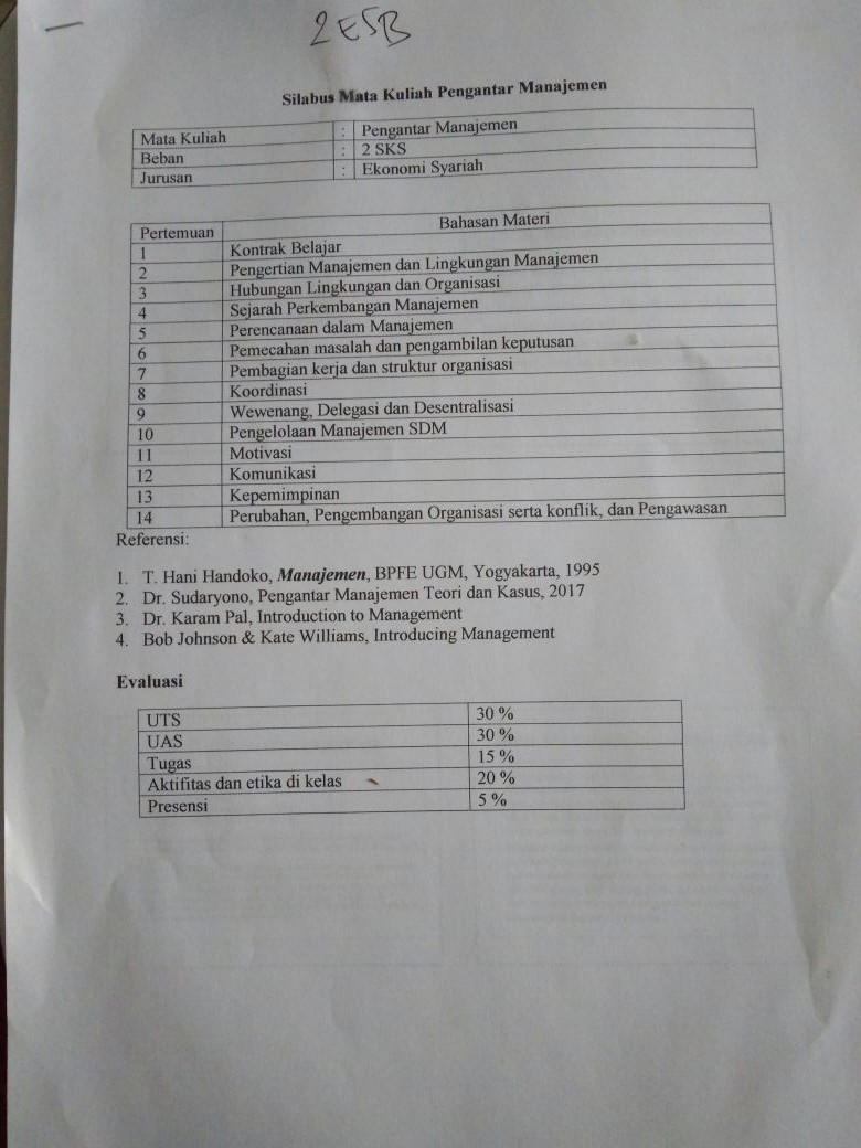 Blog Ekonomi Syariah B 2017: Silabus Pengantar Manajemen