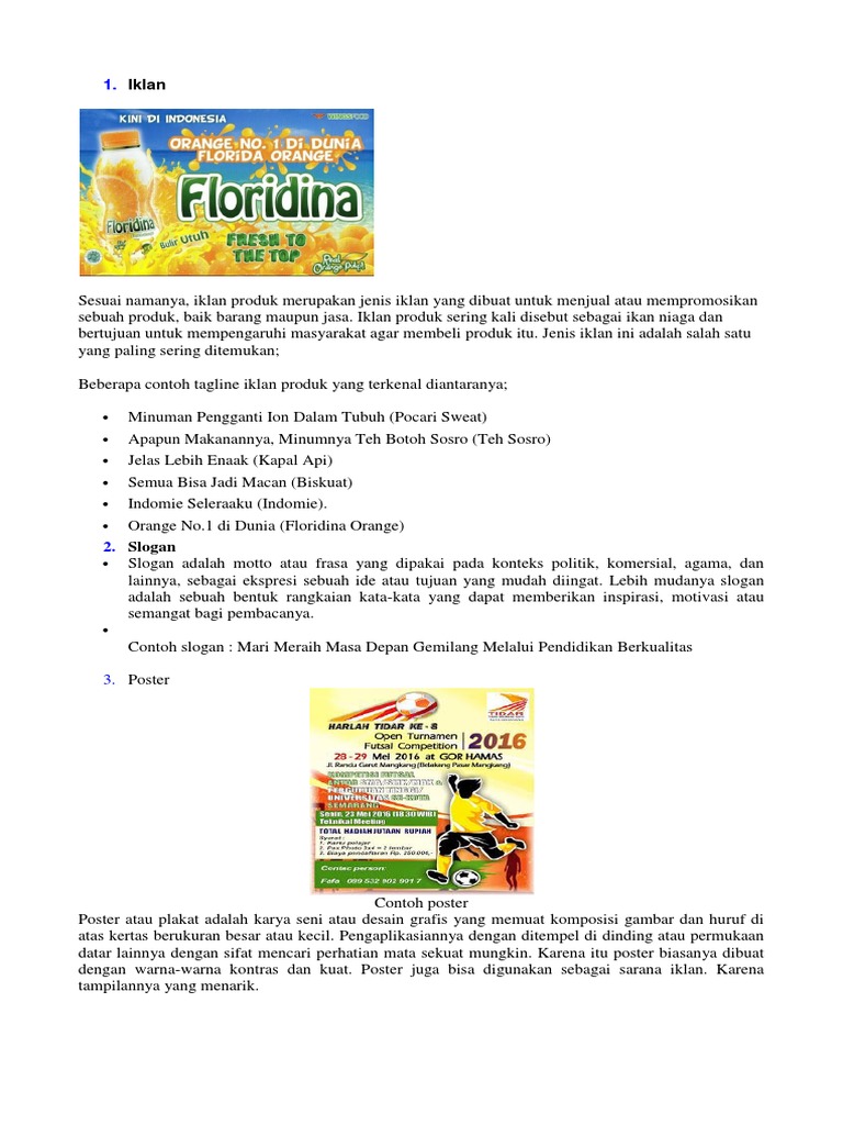 1. Jelaskan yang menjadi perbadaan dari Teks iklan, slogan, dan poster. Buatlah dengan kata-kata - Brainly.co.id