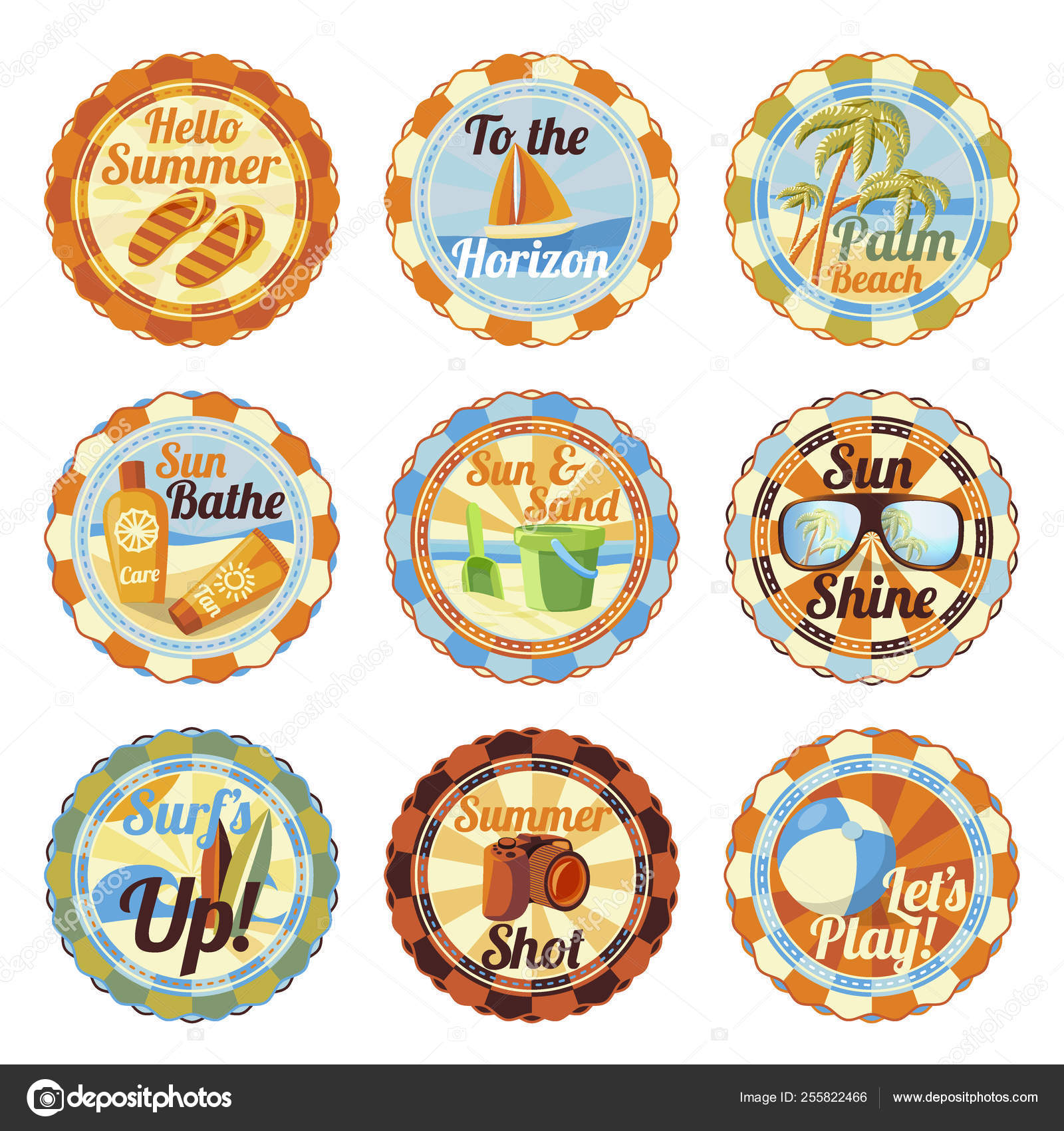 Vector set - cute bright summer badges with slogan — Stock Vector © tashaleks #255822466