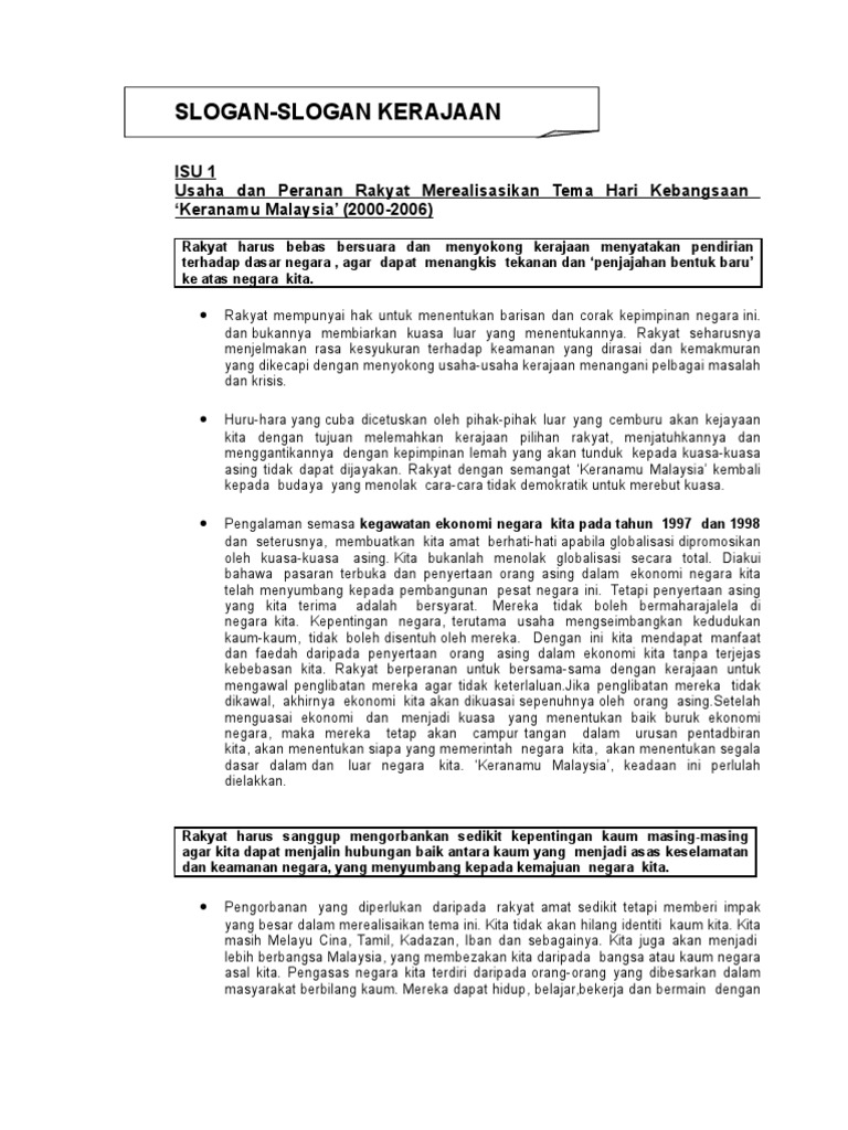 PENULISAN KARANGAN SPM-ISU SLOGAN-SLOGAN KERAJAAN