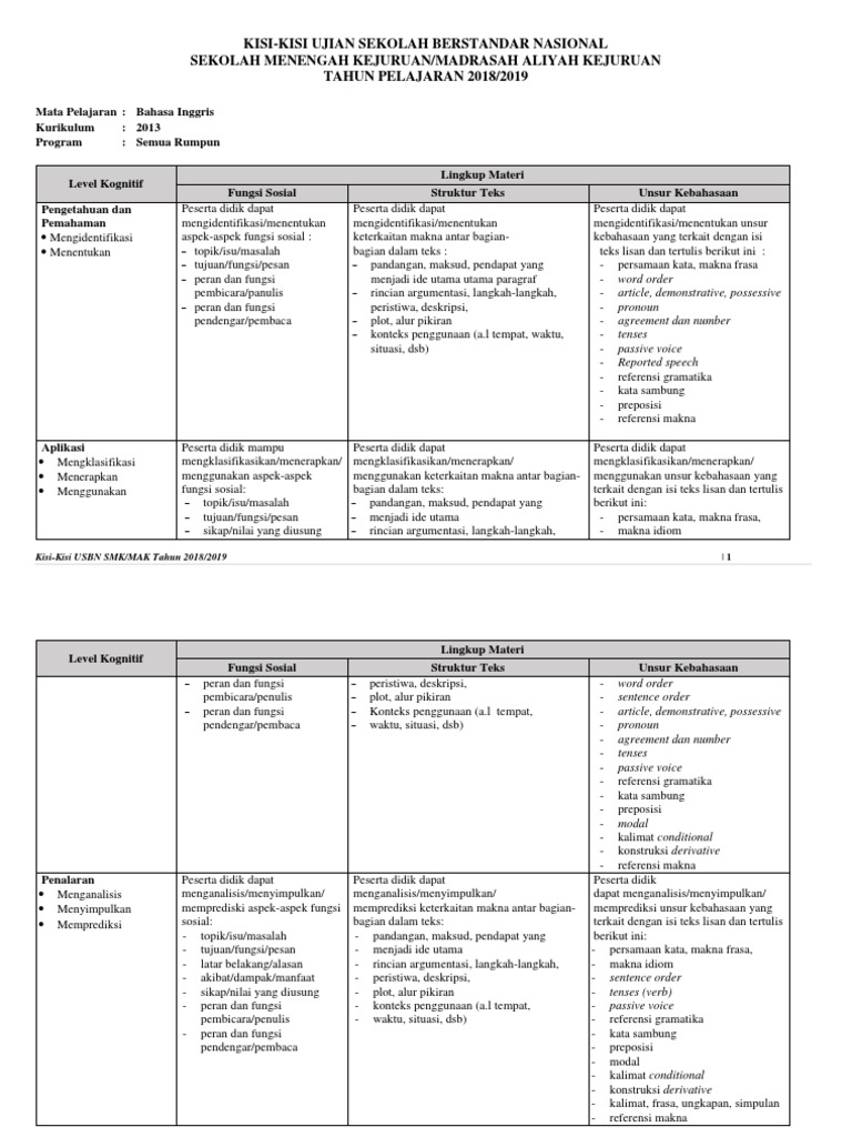 KISI KISI UNBK BAHASA INGGRIS 2020 - SOAL UAS / PAS Kelas12 SMK/SMA Ganjil