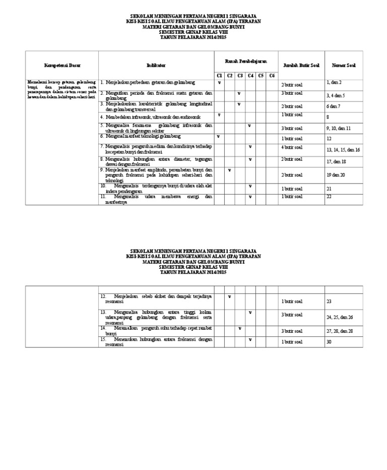 Kisi-Kisi Soal Getaran Gelombang Dan Bunyi