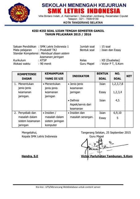 DOC) Soal MID Semester TKJ Mendesain Sistem Keamanan Jaringan | Didit Aji Septiawan - Academia.edu