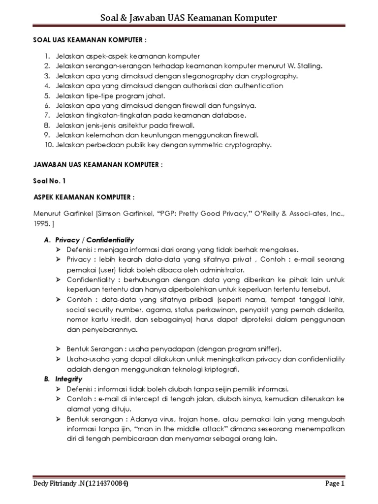 Kisi-kisi Soal UAS Keamanan Sistem Informasi – Pendahuluan | Fairuz el Said