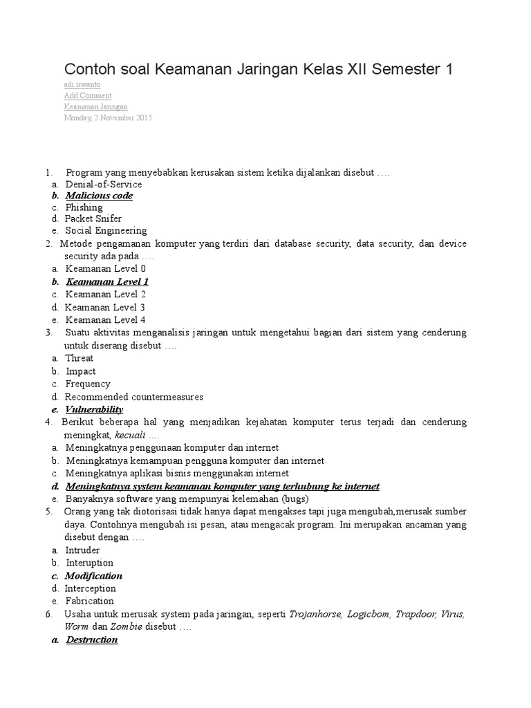 Contoh Soal Keamanan Jaringan Kelas XII Semester 1