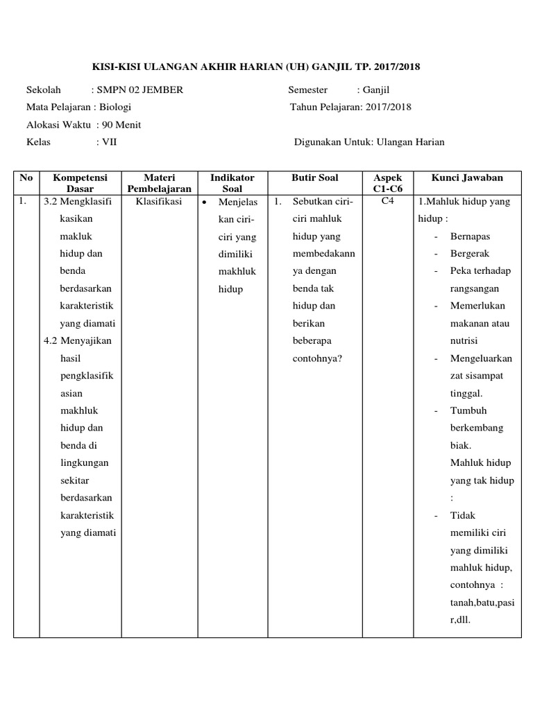 Contoh Soal Klasifikasi Makhluk Hidup Kelas 7 - Dapatkan Contoh