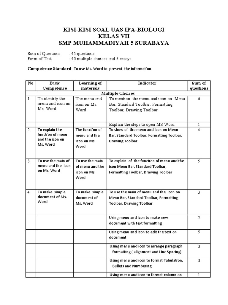 Kisi-kisi Soal Uas Ipa-biologi Kelas Vii Smp | Microsoft Word …