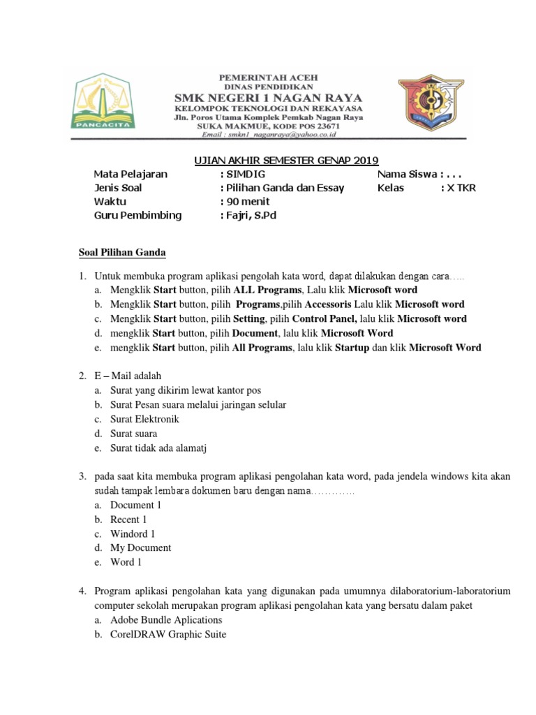 contoh soal latihan word untuk kelas 10 simulasi digital