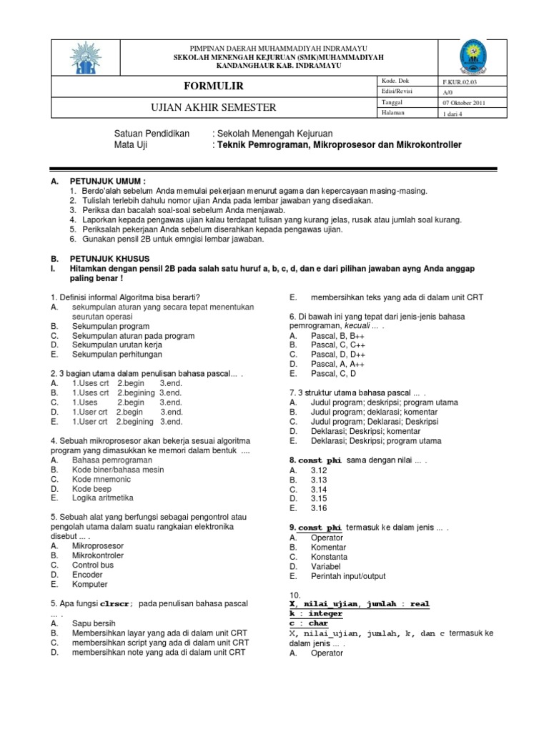 Contoh Soal Dan Jawaban Ulangan Semester Ganjil Mikroprosesor Dan Mikrokontroler - Guru Ilmu Sosial