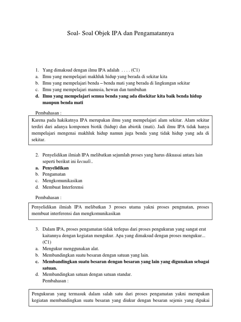 PDF) Latihan Soal Ilmu Pengetahuan Alam (IPA) Topik : Objek IPA dan Pengamatannya | reza perpusda - Academia.edu