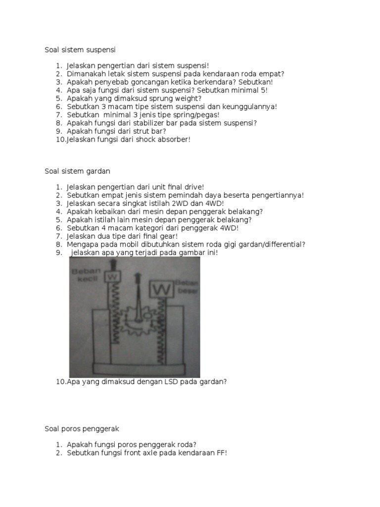 Soal Ujian Poros Penggerak