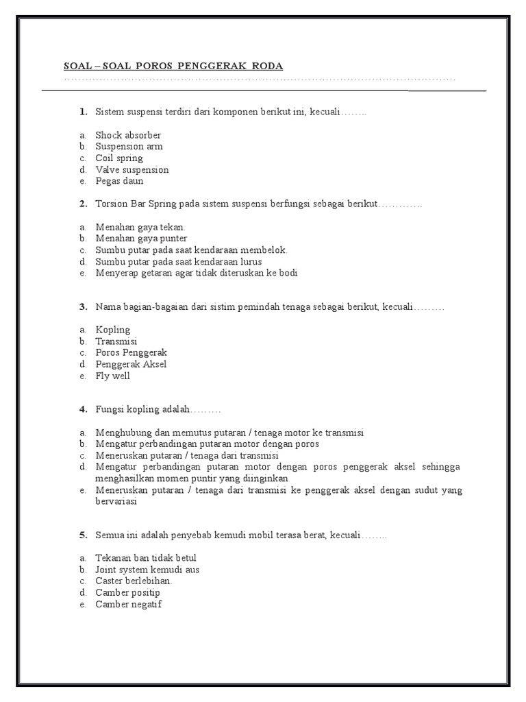 Contoh Soal Dan Jawaban Pilgan Otomotif Tentang Kemudi - Guru Ilmu Sosial