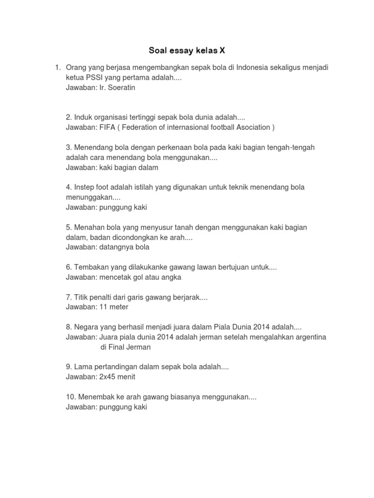 Contoh Soal Essay Tentang Sepak Bola Beserta Jawabannya - Dapatkan …