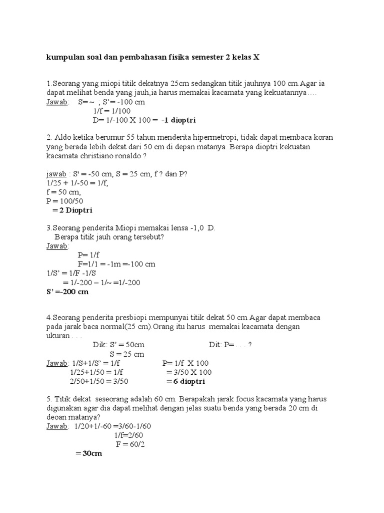 Contoh Soal Essay Fisika Kelas 10 Semester 2 Kurikulum 2013