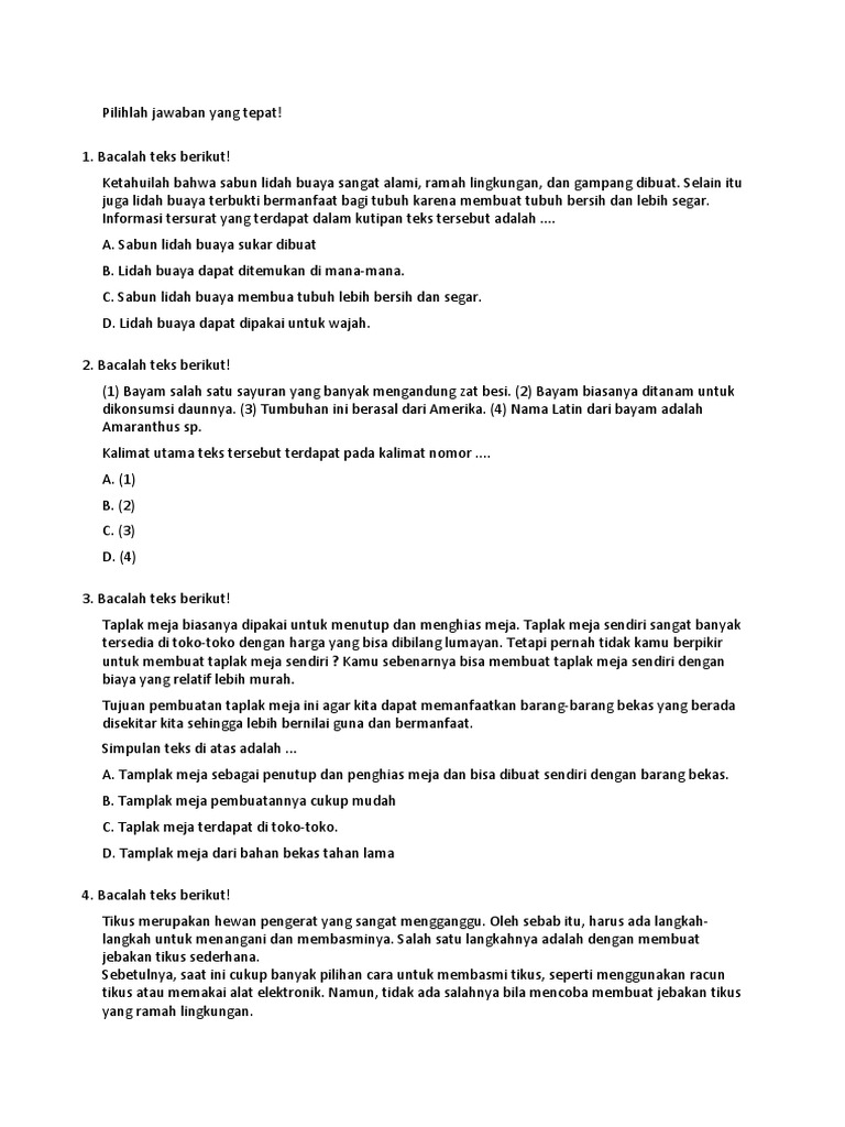 Contoh Soal Pilihan Ganda (PG) Teks Laporan Percobaan | Bahasa …