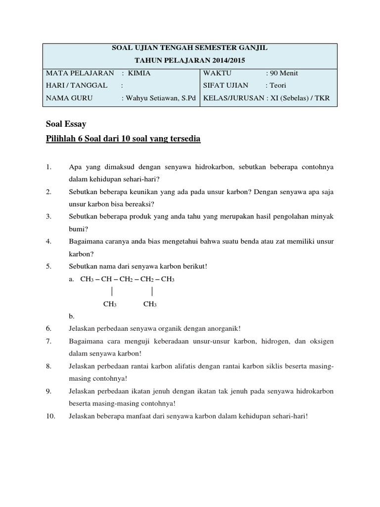 DOC) Soal Pilihan Ganda Kimia Kelas X Semester 1 & 2 | Irfan Kamal Firdaus - Academia.edu