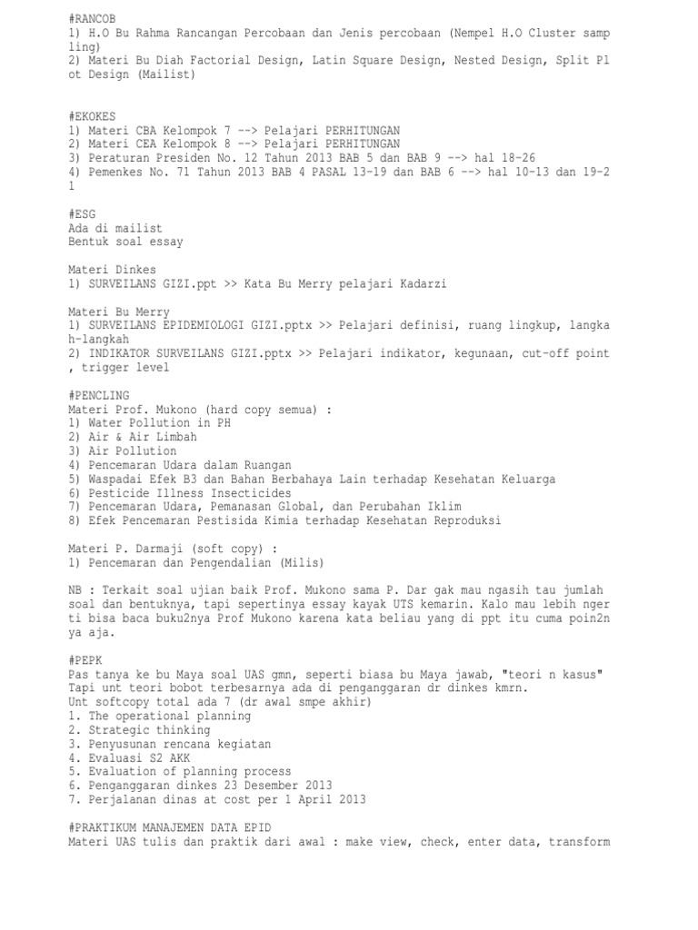 DOC) CONTOH SOAL UJI KOMPETENSI TENAGA KESEHATAN LINGKUNGAN | Ira …