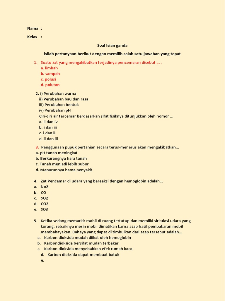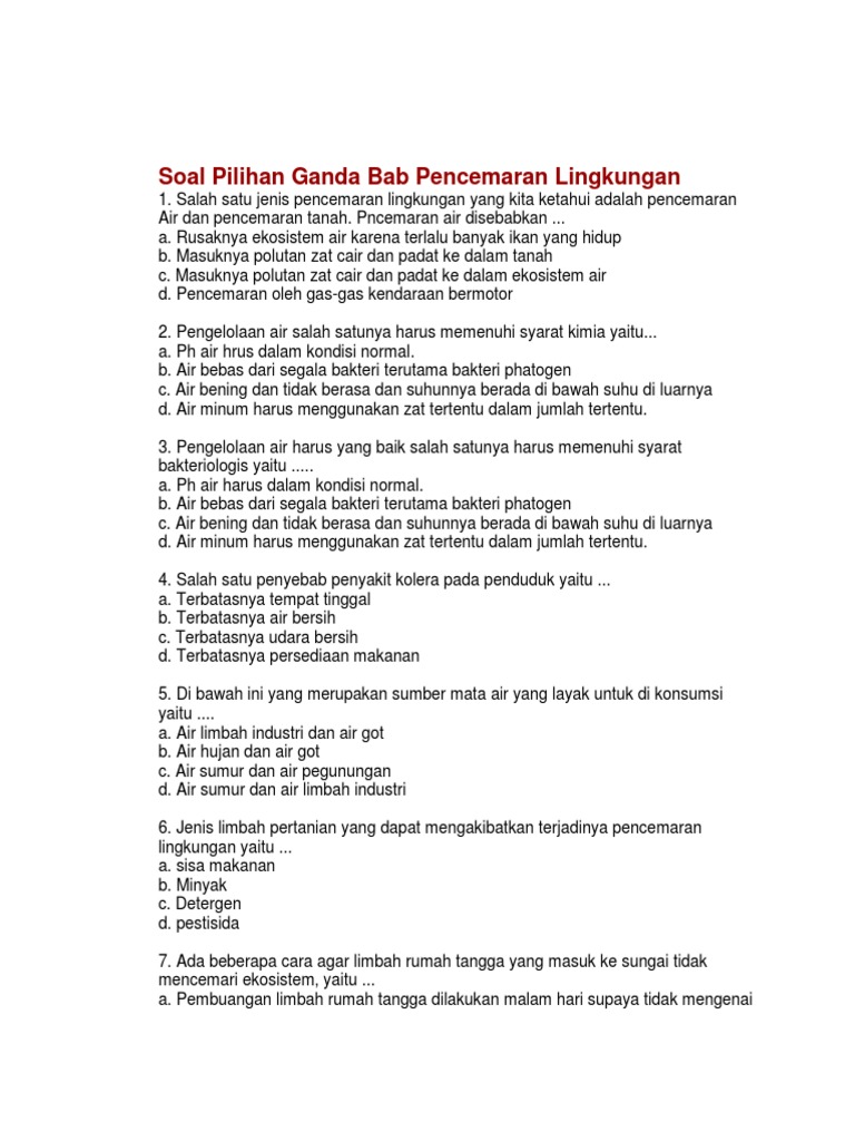 Soal Dan Jawaban Pencemaran Lingkungan