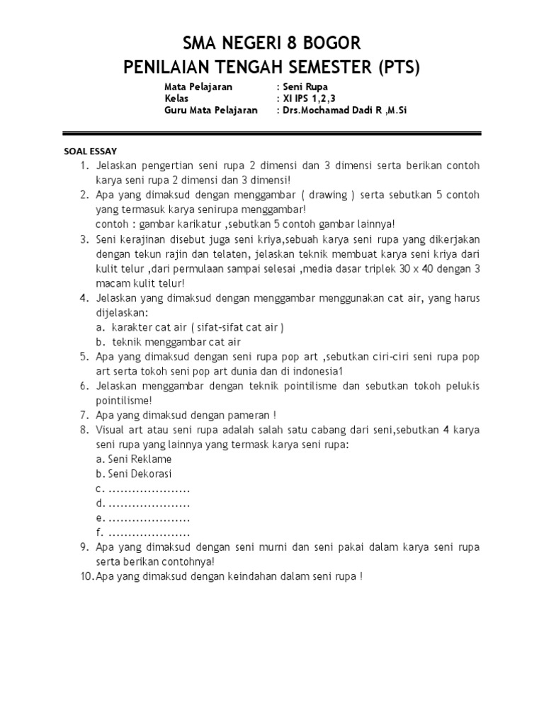 DOC) Soal UAS Seni Budaya Kelas X 2016-2017.docx | Rahmad Ramadlan - Academia.edu