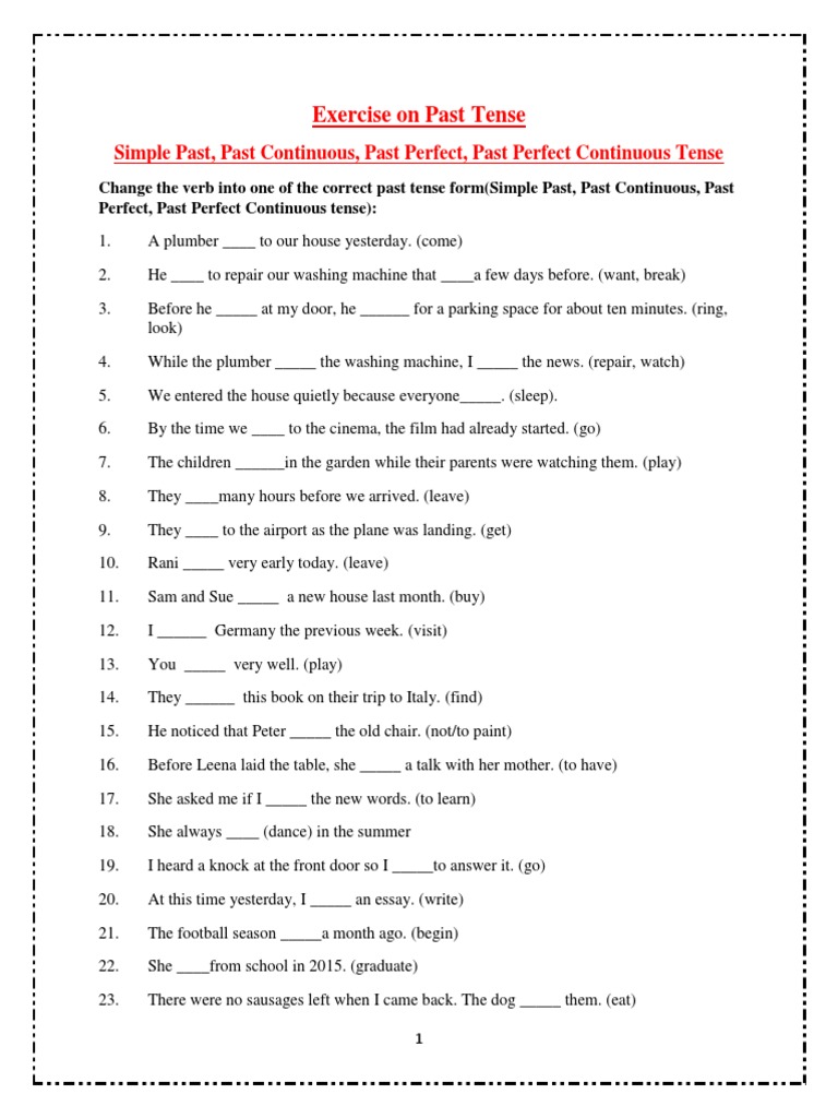 Exercise on Past Tense: Simple Past, Past Continuous, Past Perfect …