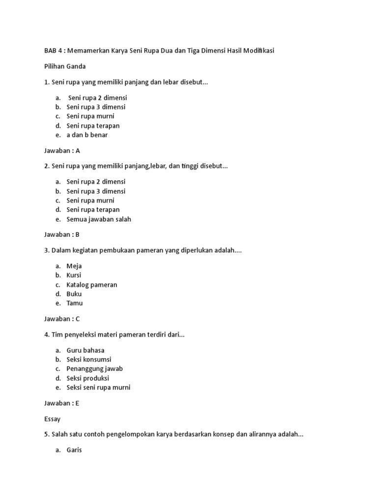 80 Essay Seni Budaya Kelas XII Semester Genap Lengkap Beserta Kunci Jawaban - Soal Dan Jawaban