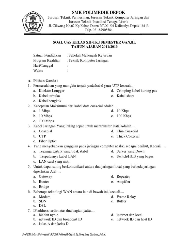 Soal Dan Jawaban Tkj Kelas X Semester 1 - Contoh Soal