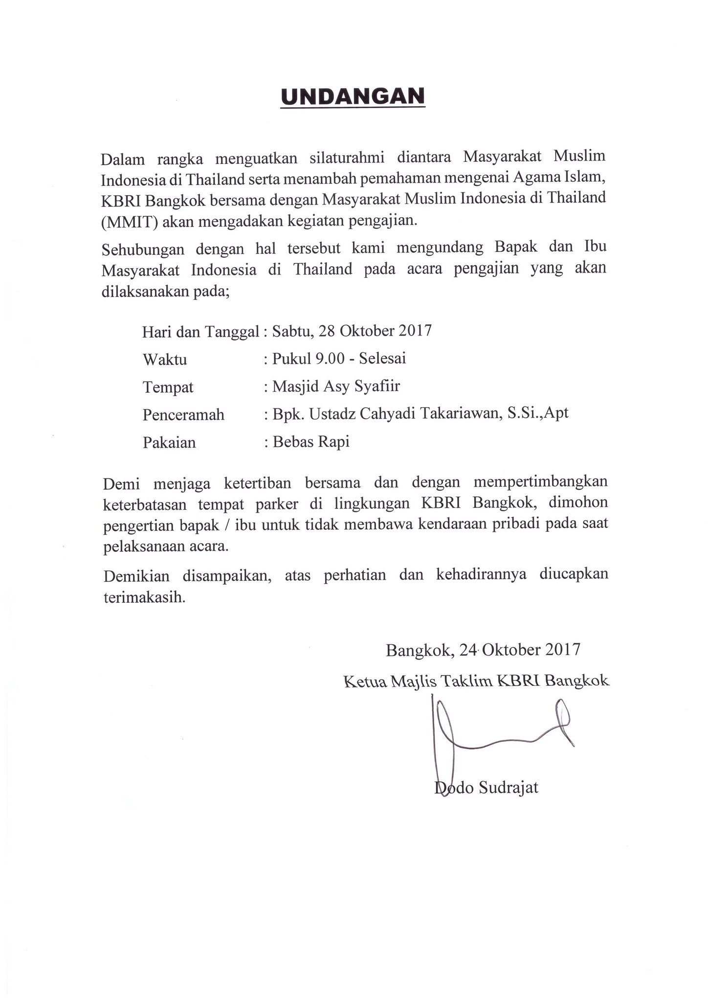 Indonesian Embassy Bangkok auf Twitter: “Meralat surat undangan yang menunjukan waktu dimulainya pengajian yang semula pukul 9.30 menjadi pukul 9.00. Terimakasih.… https://t.co/Sk4p3fkZ8P”